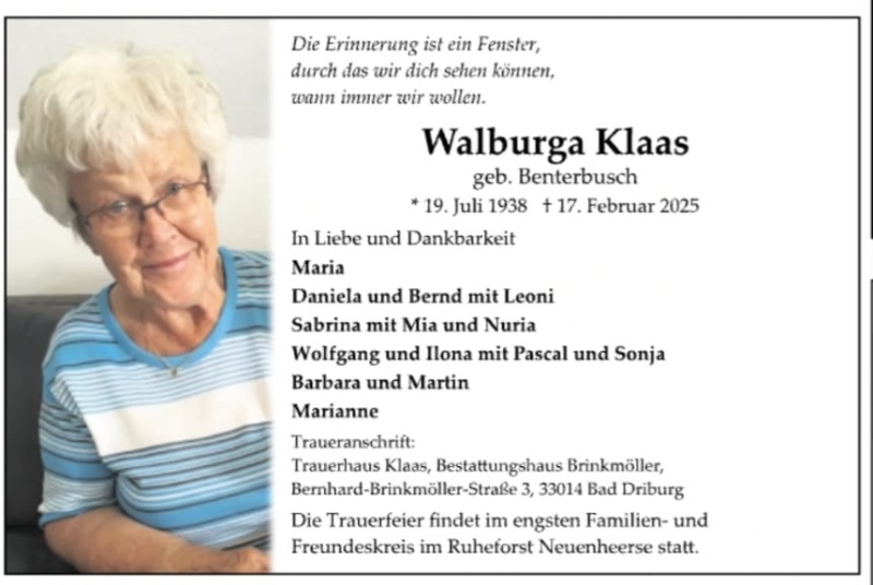 Walburga Klaas geb. Benterbusch
